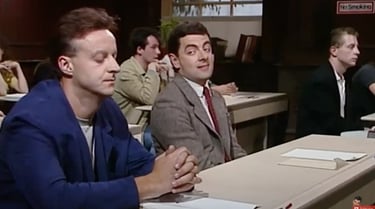 Arrivé dans la salle d’examen le voisin de table de Mr. Bean lui demande s’il a bien révisé. Il répond qu’il s’est surtout penché sur la trigonométrie, tandis que son voisin a étudié les calculs. C’est alors que Mr. Bean se moque de lui disant que les calculs étaient le sujet de l’année dernière ! (Moqueur)