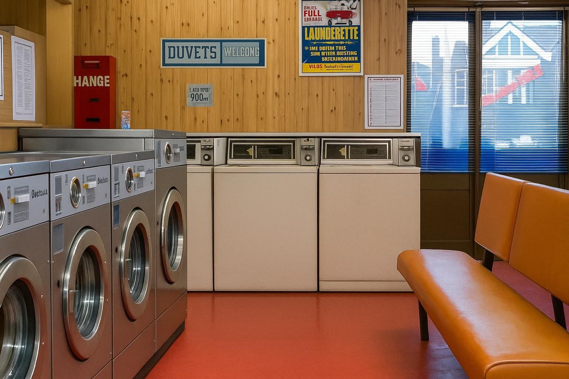 Avec une démarche peu conforme Mr. Bean est remarqué par un client costaud et moqueur. Face aux provocations de ce dernier Mr. Bean se venge. Il échange le gobelet d'adoucissant par un café que ce client verse dans sa machine à laver. Le linge de l’homme, un kimono blanc, devient ainsi marron, ce qui provoque sa colère. (Vengeur)