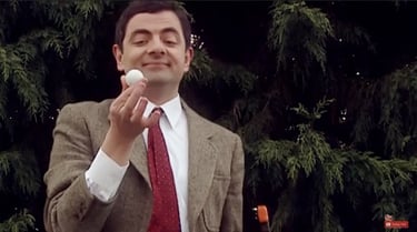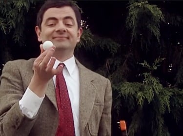 Mr. Bean se rend au mini-golf. Il se moque d’un jeune enfant qui n’arrive pas à passer la première difficulté du parcours. Bean réussi ce trou N°1 (Par 4) en une seule fois. (Moqueur)
