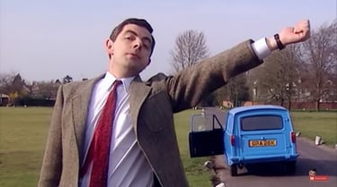 Après avoir fait un tour dans les égouts puis dans un camion poubelle Mr. Bean décide de faire du stop. Une voiture freine et ouvre sa porte. Il s’agit de la Reliant bleue qui croise à nouveau la route de Bean. Avec son regard agacé et méprisant Mr. Bean va ignorer le conducteur de la Reliant qui va reprendre son chemin ! (Rancunier)