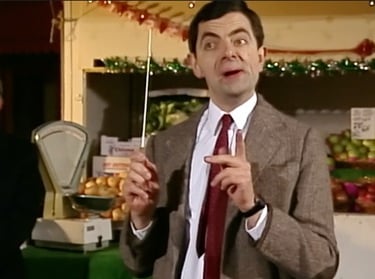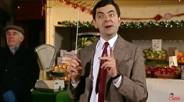 Mr. Bean retrouve le marché de Noël où une imposante dinde et à gagner. Pour cela, il faut deviner son poids. Mr. Bean trouve la combine en se pesant sans et avec la dinde, et trouve le poids exact de cette dernière sous le regard médusé du boucher. (Génie)