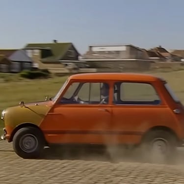 Bean a fait subir à cette Mini une conduite musclée au cours de laquelle il prend l'habitude de foncer dans des panneaux de signalisation, déraper et ne laisser aucune chance à la Reliant Regal.