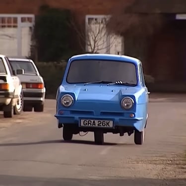 La Reliant Regal Supervan III à trois roues et une autre voiture culte de la série ! Elle fait des apparitions régulières, et son sort est souvent… disons, mouvementé. Des situations qui deviendront un running gag amusant.